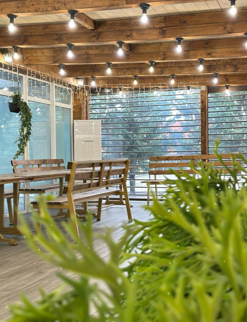Мангальная зона, чайник, холодильник, а так же возможность пользования бассейном и территорией отеля.